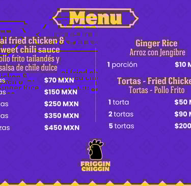 “Vive la mejor experiencia de pollo, preparado con pasión y dedicación en ¡FRIGGIN CHIGGIN!” 🐔🔥